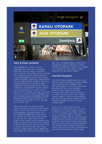 artırmak için yansıtıcı (reflektif) agregalar veya otomatik olarak park yerine taşınır. Böylece